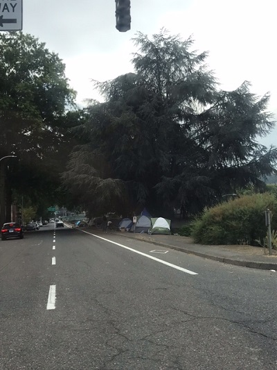 In the middle of this ever-growing bustling city, nestled among the beautiful pine trees, mountain ranges, and flowing rivers were makeshift lean-tos, tents, and broken-down vehicles. There was debris and litter everywhere. The inhabitants of these makeshift homes were congregating or panhandling in the streets. Even now, thinking back at what I saw, seems unreal to me.