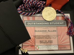The director of the program and an instructor came over to our group to go over the order we were to walk in when they mentioned the outstanding student. A student from my course remarked that we were all outstanding students and did not realize or know that there was an award being given out. She also realized that we all had different items on our caps and gowns. She started asking questions about why they were different.