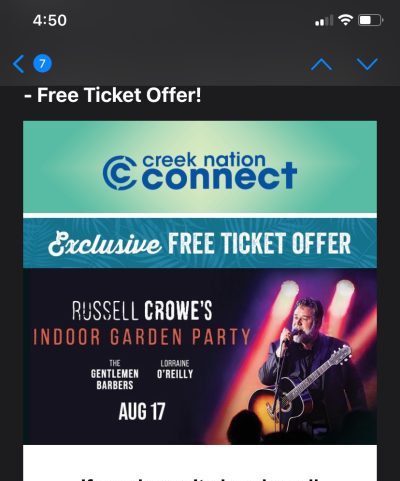 I noticed an email from the casino saying that I had won 2 free complimentary tickets to Russell Crowe’s concert. Once again this feeling of elation and excitement hit me. I called the number, verified my rewards club number, and secured two tickets. I was so happy, the opportunity to see and hear him in person was just overwhelming.